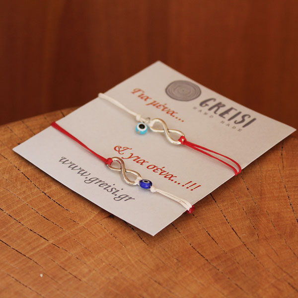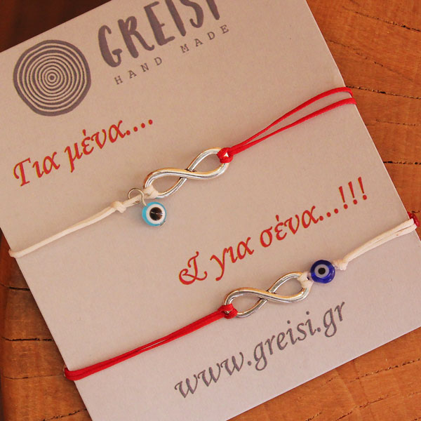 Μάρτης κατασκευασμένος από κειρωμένο κορδόνι. Ασημί μεταλλικό άπειρο, μουράνο και ακρυλικό μάτι. Αυξομείωση μακραμέ για να προσαρμόζεται σε όλους τους καρπούς.