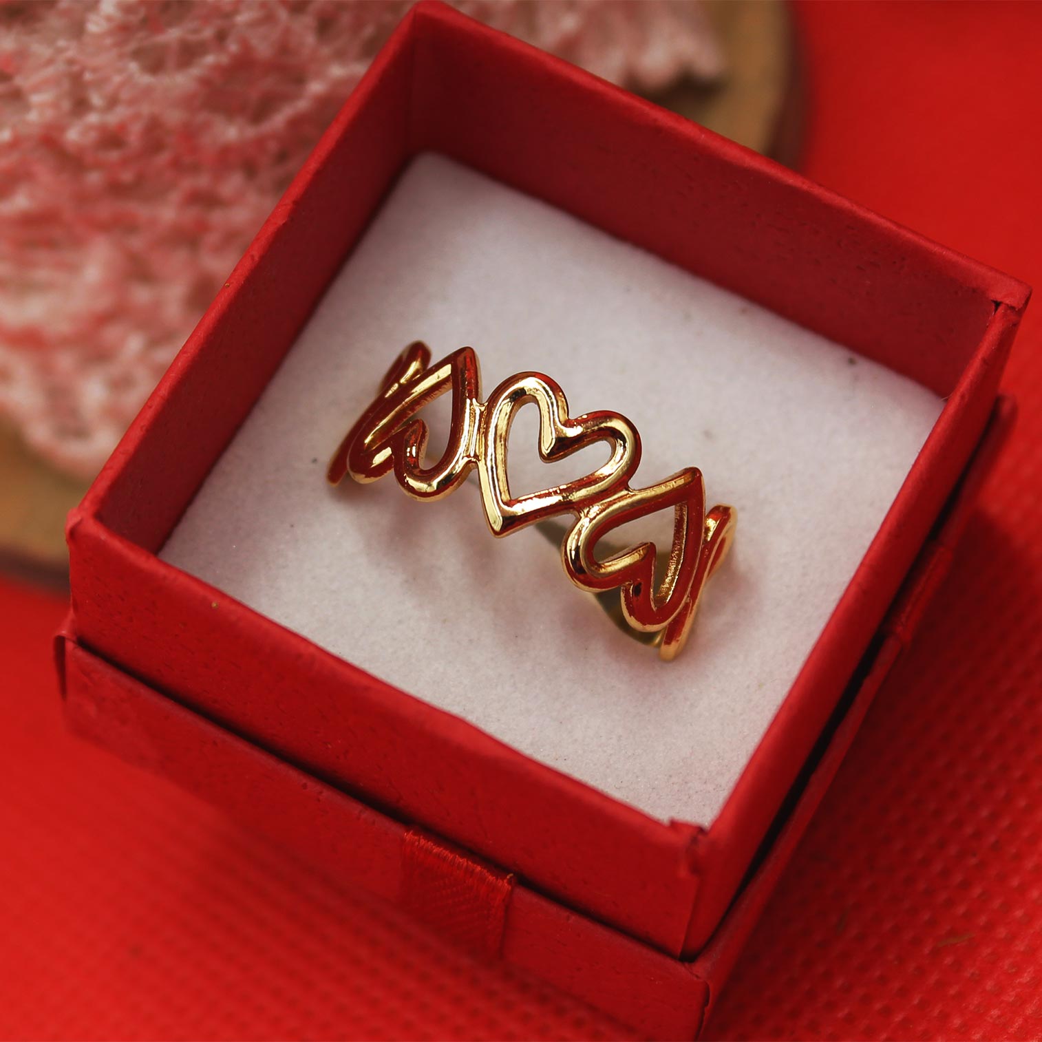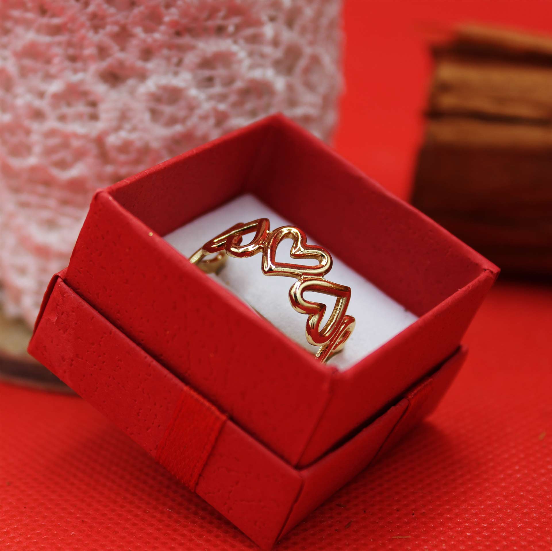 Χαρακτηριστικά: Χρυσαφί δαχτυλίδι με σειρά από καρδιές, εντυπωσιακό και προσαρμόζεται σε όλα τα δάχτυλα.