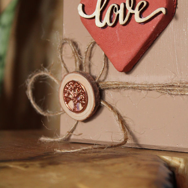 Διακοσμήθηκε με πύλινη, χειροποίητη καρδιά με μεταλλικό “Δέντρο ζωής”, φυσικό σπάγκο και ξύλινα στοιχεία.