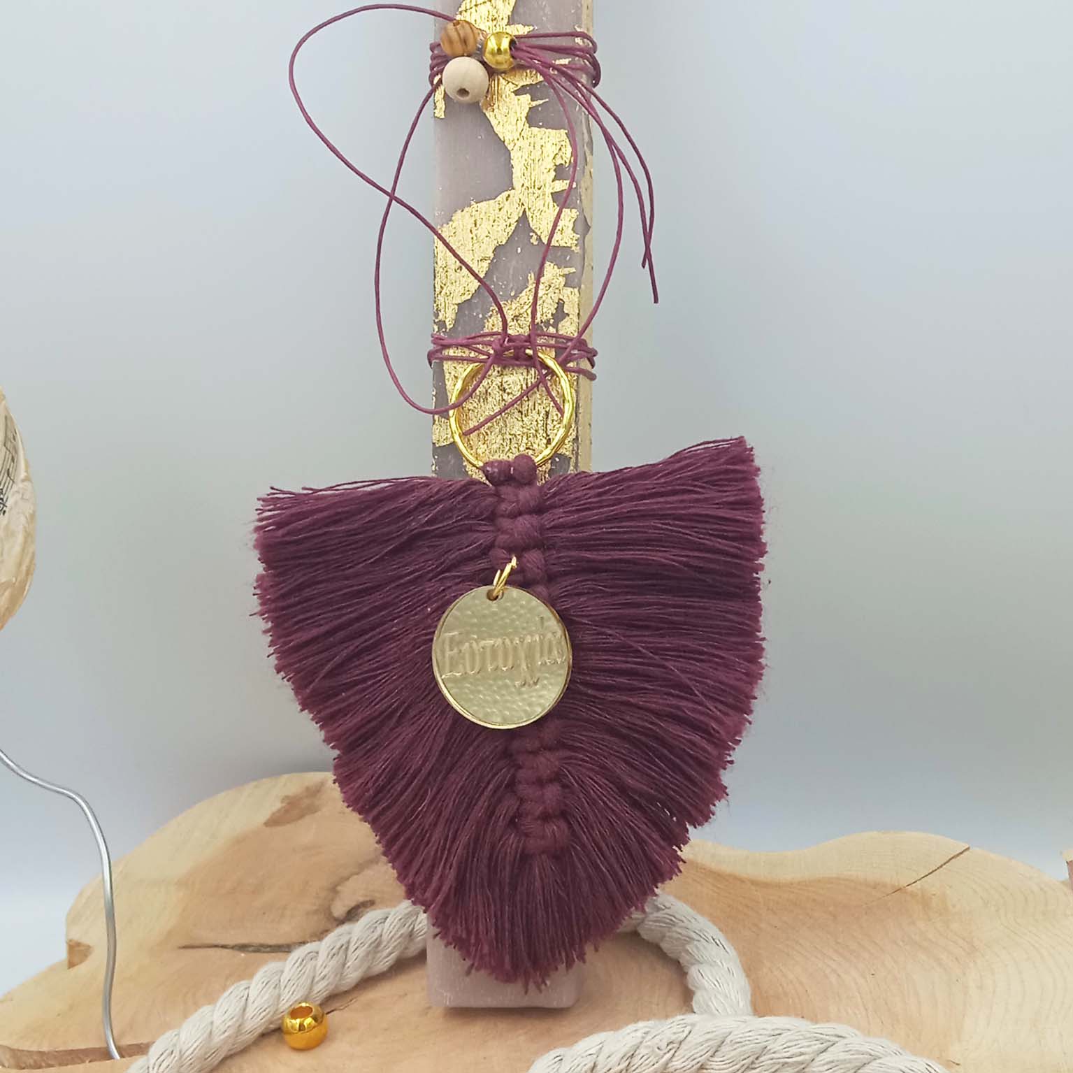 Λαμπάδα μακραμέ φτερό ευτυχία