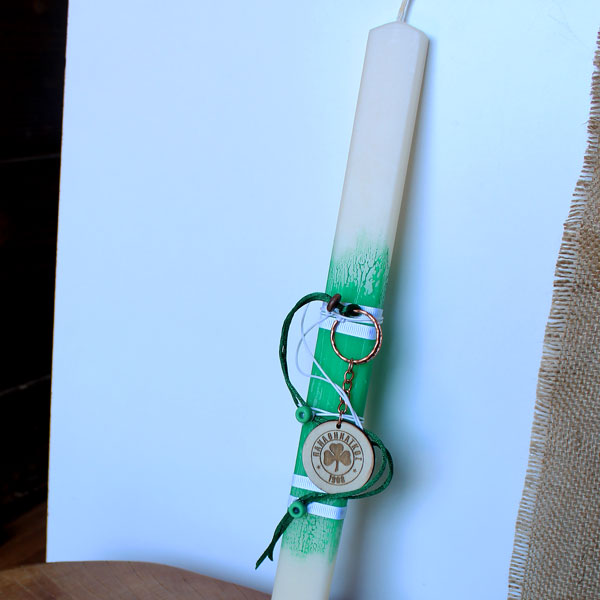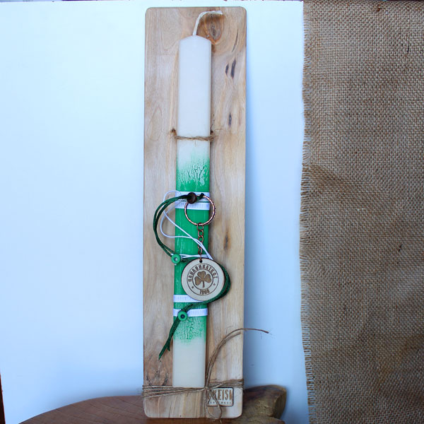 Η λαμπάδα του Παναθηναικός, είναι ελληνικής κατασκευής. Είναι ελαφρώς αρωματισμένη. Το μπρελόκ είναι αποσπώμενο. Τοποθετημένη σε ξύλινο ταμπλαδάκι ανάλογα διακοσμημένο 39 επί 9,5. Όλες οι λαμπάδες συνοδεύονται από όμορφη συσκευασία δώρου.