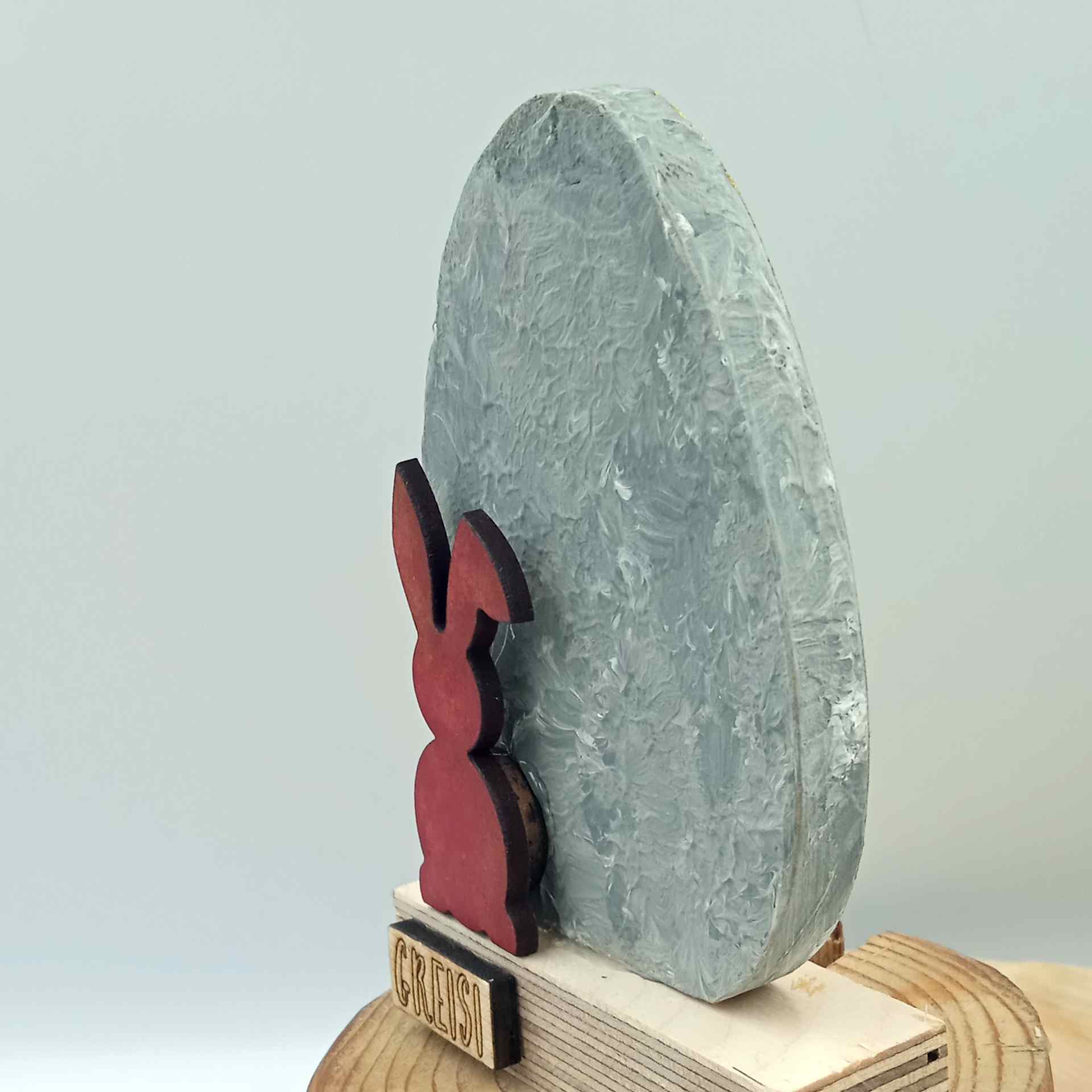 Υλικά: Το ξύλινο, πασχαλινό αυγό έχει ανάγλυφη υφή. Κατασκευασμένο