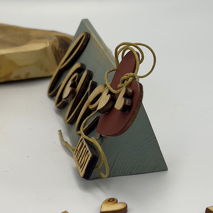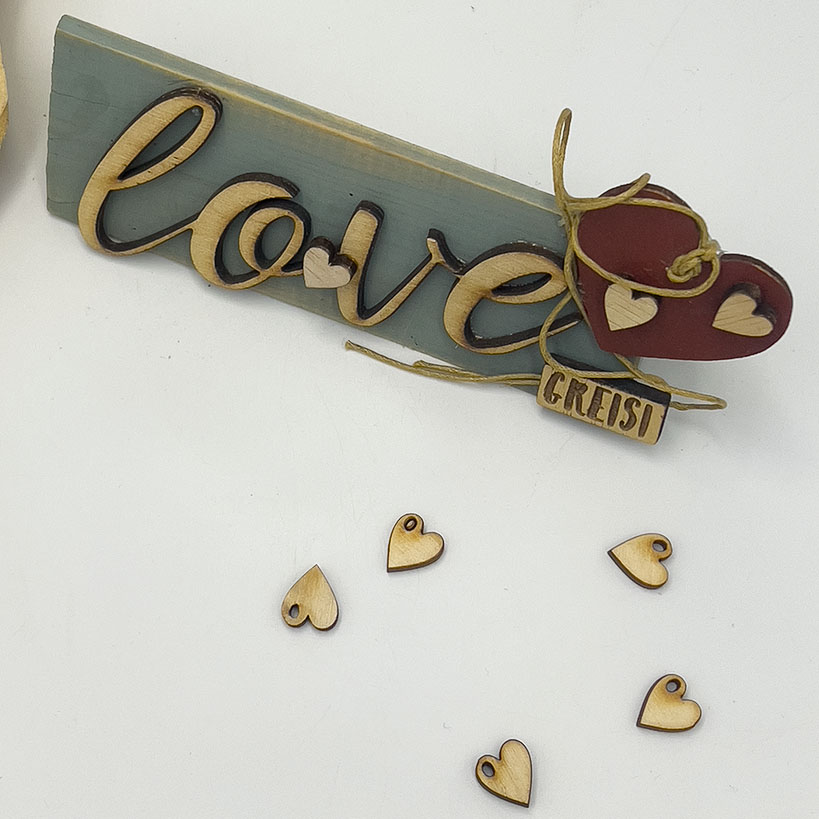 Είναι σε γκρι – μπλε πατιναρισμένη απόχρωση.Διακοσμήθηκε με ξύλινο, φυσικό ‘’ love ‘’ και καρδιές.