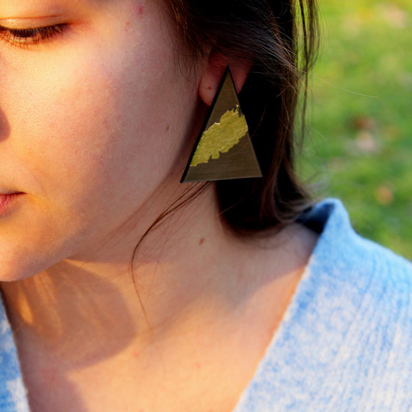 Σκουλαρίκια γεωμετρικά από Plexiglass με φύλλο χρυσού