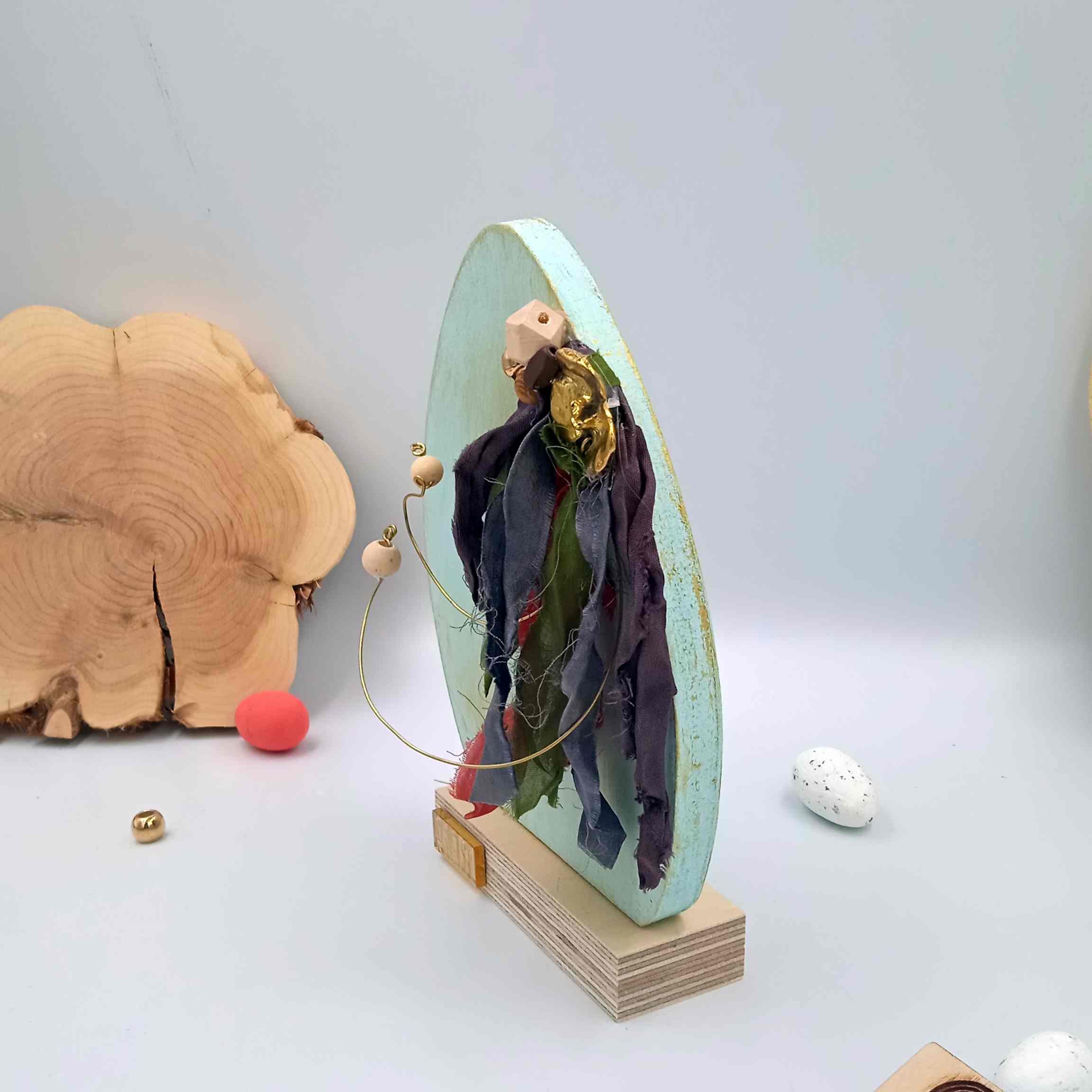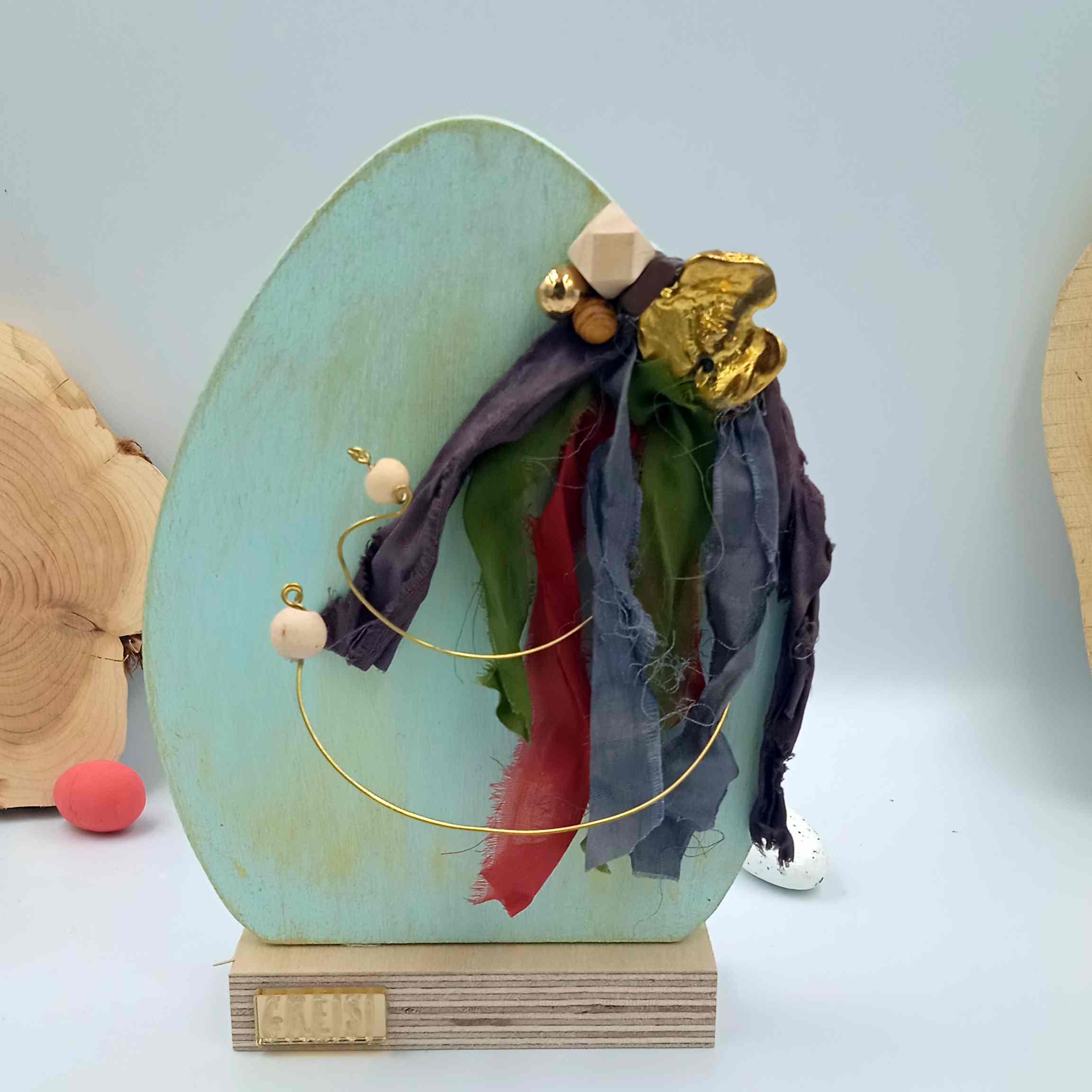 Υλικά: Το ξύλινο αυγό είναι σε πετρόλ με χρυσή πατίνα.