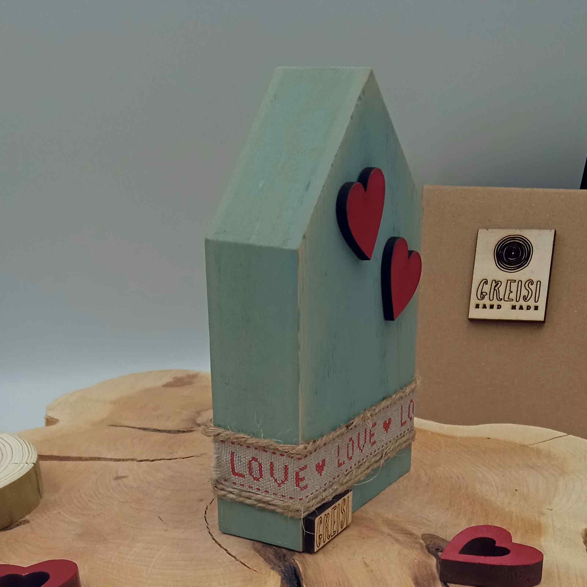 Το ξύλινο, διακοσμητικό σπιτάκι με καρδιές είναι ένα όμορφο διακοσμητικό που συνδυάζεται υπέροχα σε όλους τους χώρους.