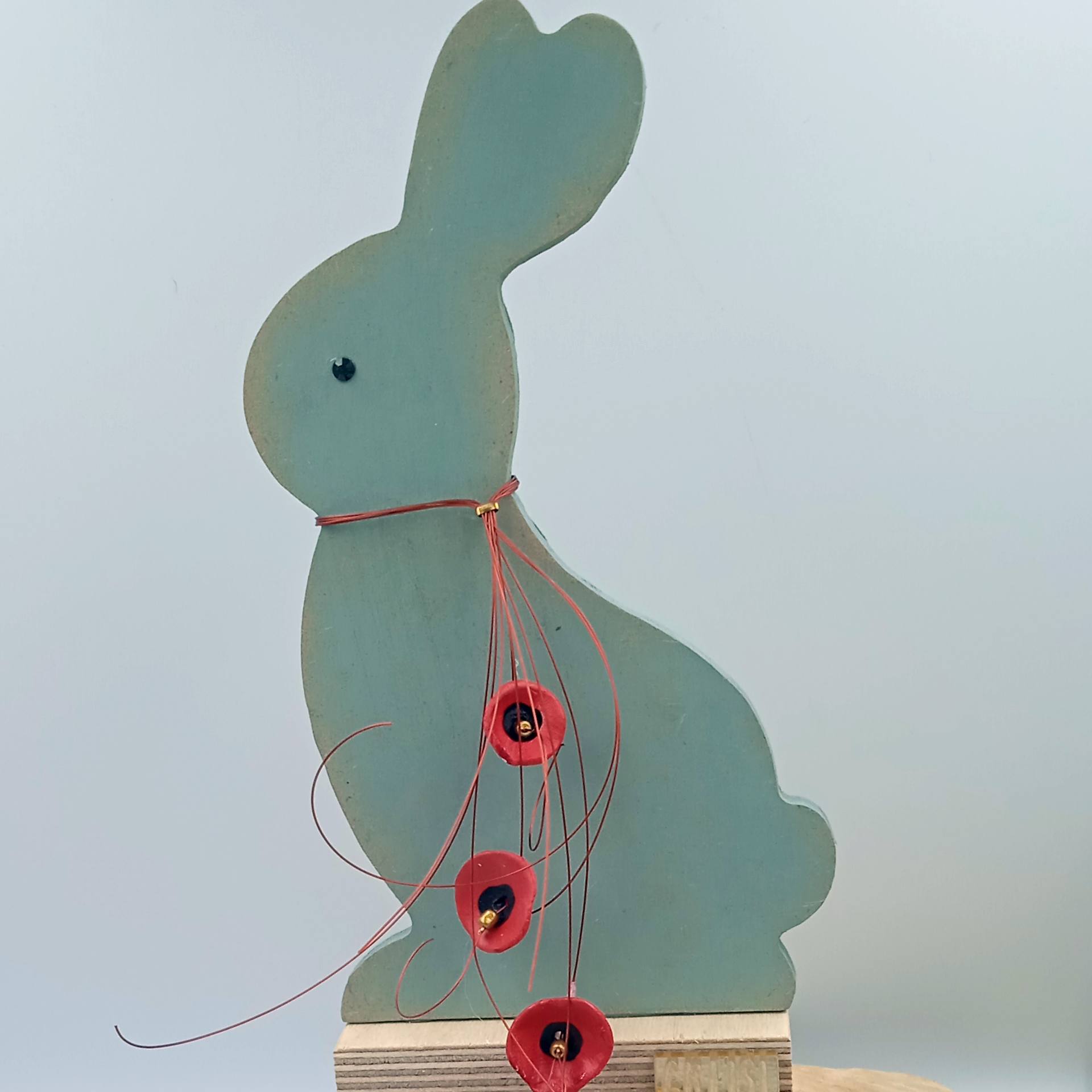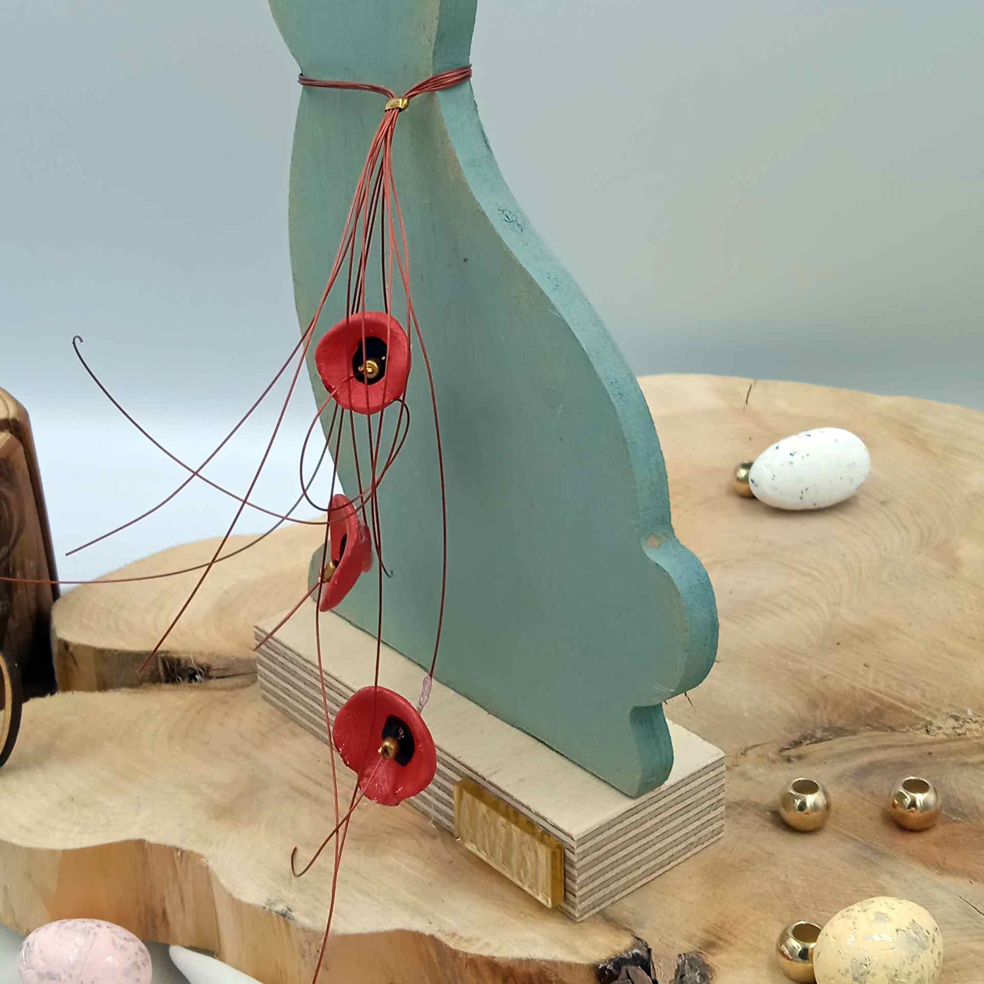 Υλικά: Ο ξύλινος λαγός με τις παπαρούνες είναι από mdf.